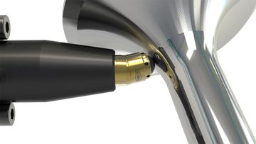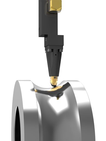 The heart of the HG tool is a special ball of hard material which is hydrostatically mounted in a ball holder. The ball is pressed with a defined rolling pressure against the surface of the workpiece by the pressure medium, either oil or air, in order to shape the profile. The process induces residual compressive stresses into the boundary zone, increases the strength of the material and at the same time smooths the surface.